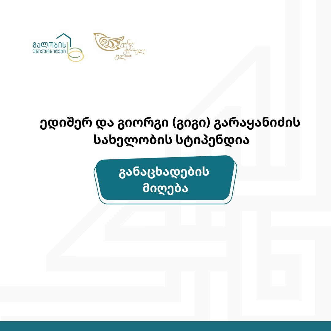 ედიშერ და გიორგი (გიგი) გარაყანიძის სახელობის სტიპენდიის მისაღებად განაცხადების მიღება დაიწყო ედიშერ და გიორგი (გიგი) გარაყანიძის სახელობის სტიპენდიის მისაღებად განაცხადების მიღება დაიწყო galoba2025-11-06T16:04:39+04:0006/11/2025|